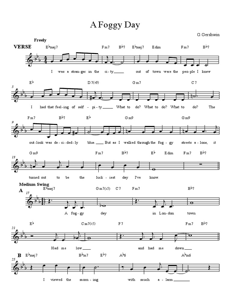 Titles matching a foggy day are listed below. A foggy day sheet music. Free sheet music for amateur musicians and learners! July 11, 1937) was an american composer and pianist whose early death brought to a premature halt one of the most remarkable careers in. Browse our 28 arrangements of a foggy day. sheet music is available for piano, voice,.