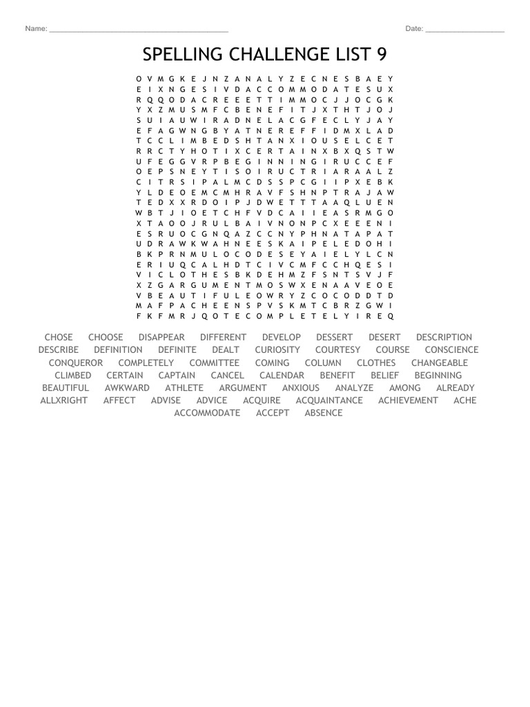 Spelling Challenge List 9 Name Date PDF