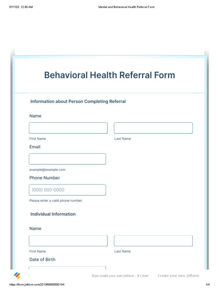Mental and Behavioral Health Referral Form PDF Mental Health