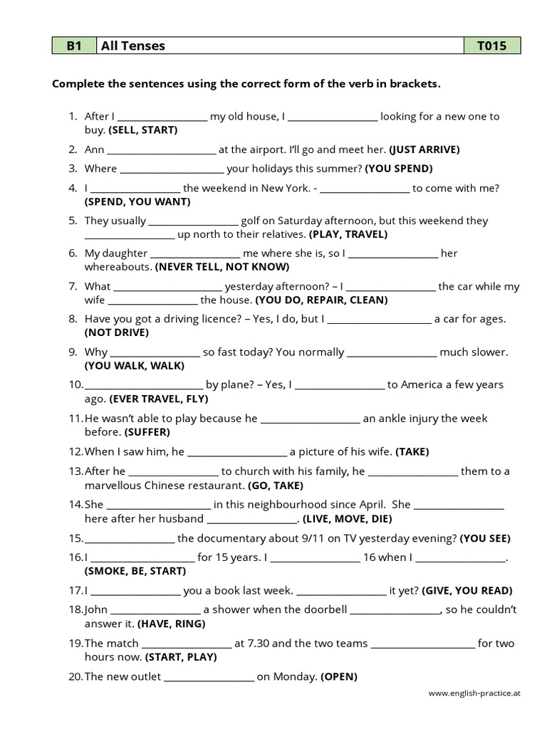 B1 All Tenses T015 Complete the sentences using the correct form of
