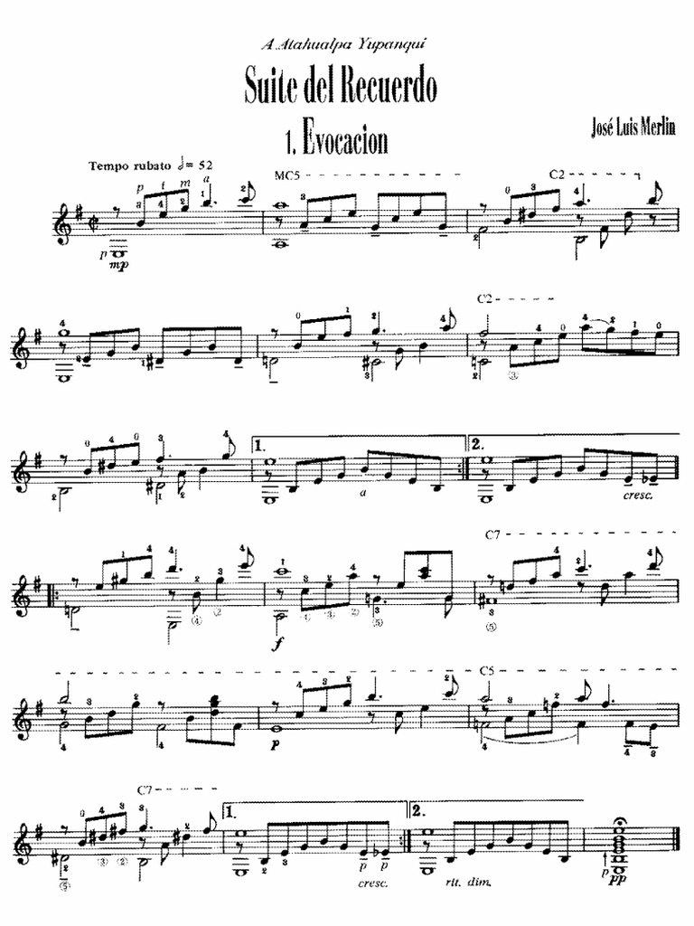 Evocación is the first movement of the suite del recuerdo by josé luis merlin, a contemporary argentine composer and guitarist. With an extraordinary career spanning more than 50 years, guitarist, composer, arranger, teacher and creative visionary josé luis merlin. Share, download and print free sheet music for piano, guitar, flute and more with the world's largest community of sheet music.