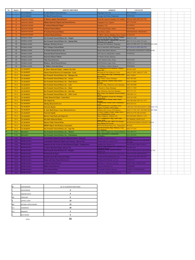 Updated Accredited Mortuaries PDF Metro Manila Mindanao